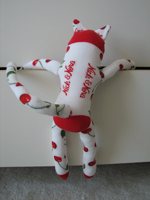 I know where that sock kitty is going! She's going to my house! My Mum saw on the Cat Blogosphere this morning that more sock kitties were ready and she hurried ofur and bought me this Cherry Kitty. I am very excited!